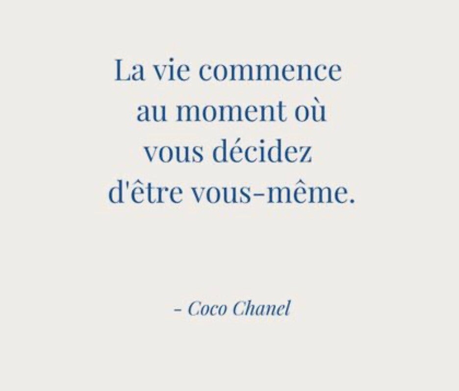 La citation de Coco Chanel souligne l'importance de l'authenticité et de l'acceptation de soi. Elle suggère que le véritable épanouissement commence lorsque l'on choisit d'être fidèle à soi-même. Cela encourage à embrasser sa véritable identité pour vivre pleinement.
